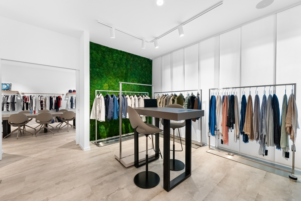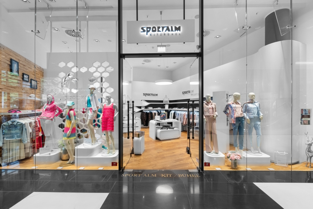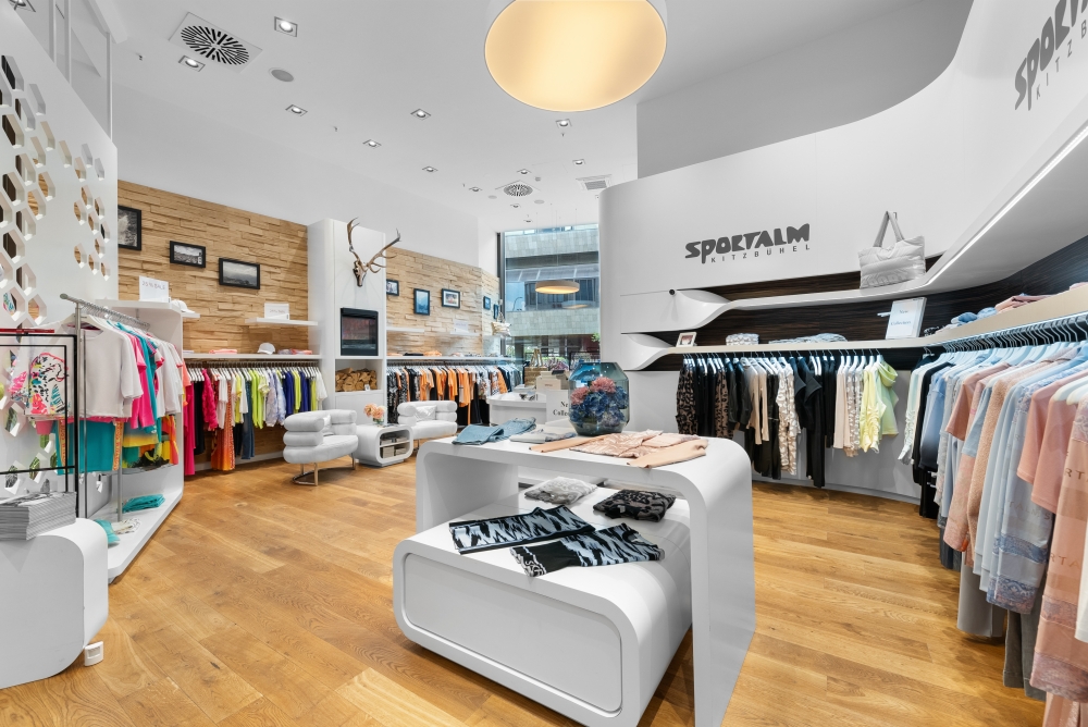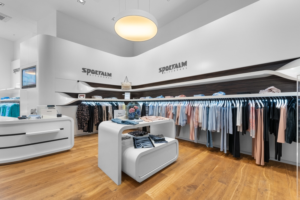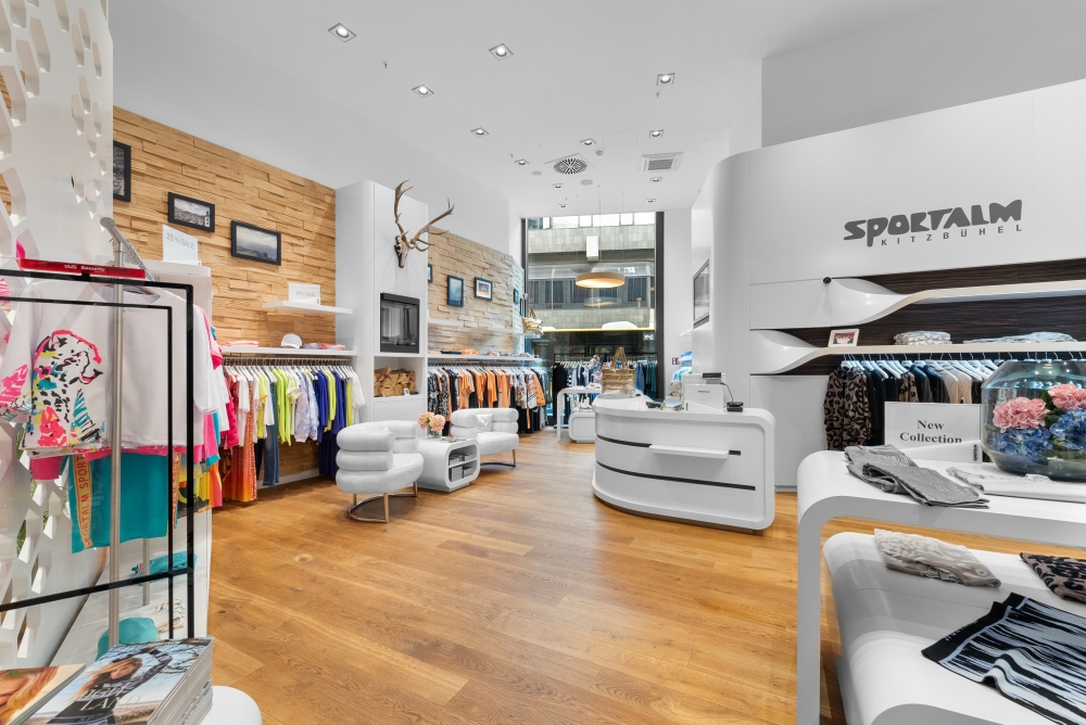 Der Laden ist 97 qm groß und verkörpert das CI der Marke Sportalm.