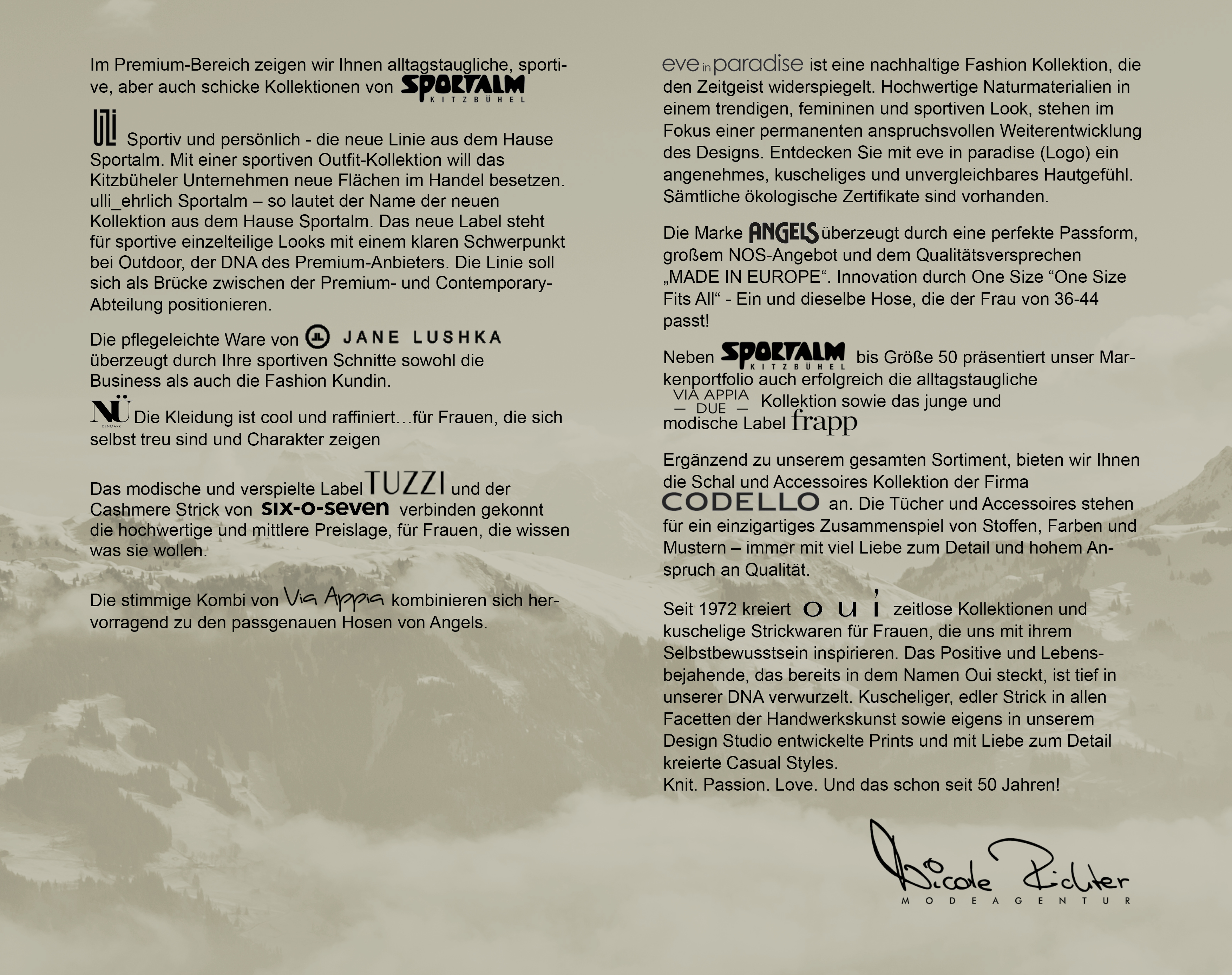 Die Modeagentur Nicole Richter ist ein mittelständisches Unternehmen mit Sitz im Fashionparc Dreilinden bei Berlin. Die Modeagentur ist geprägt