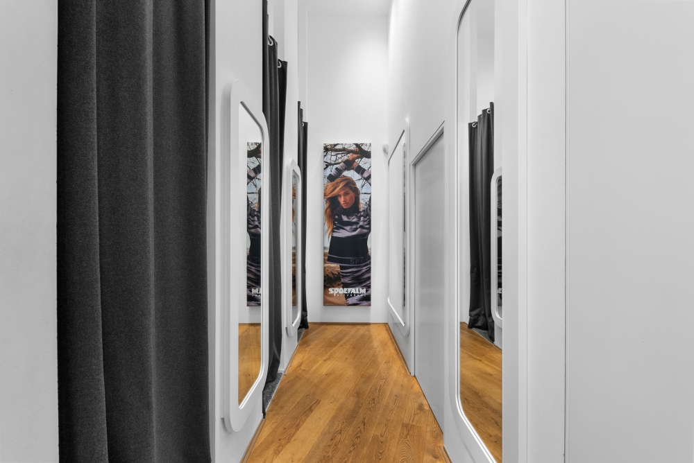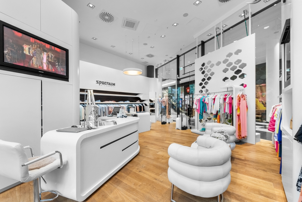 Der Laden ist 97 qm groß und verkörpert das CI der Marke Sportalm.