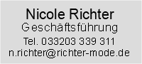Wenn Sie einen Ordertermin vereinbaren möchten, kontaktieren Sie uns gern per E-Mail unter kundenservice@richter-mode.de oder rufen Sie uns an unter Tel.: 033203 -339 31 0